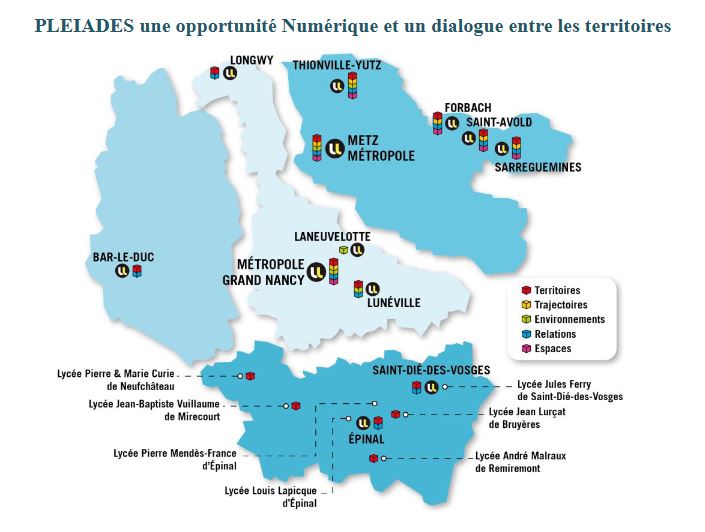 Avec son projet PLEIADES qui a été lancé en 2022, l’Université de Lorraine est lauréate de l’appel à manifestation d’intérêt Demoes (Démonstrateurs numériques dans l’enseignement supérieur). L’ambition de ce projet de transformation est de créer un environnement numérique intégrateur au service de toute la communauté universitaire.