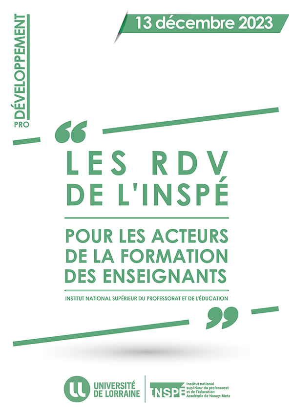 Vous êtes chaleureusement invitées et invités à participer à notre prochain "RDV de l'INSPÉ" : le mercredi 13 décembre 2023, de 9h à 14h sur le thème : Le e-portfolio en formation des enseignants : expérimentation à l’INSPÉ de Lorraine et perspectives.
