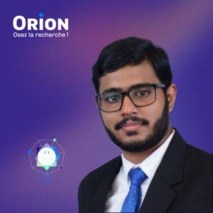 J’ai été informé du programme ORION par le Dr Fabrice Lemoine, directeur de programme du Master DENSYS. J’ai contacté ORION et, par la suite, j’ai fait partie du club Mat & Met, du club METHY et de diverses autres activités ORION. C’est grâce à leurs événements et aux responsables des clubs que j’ai été davantage sensibilisé à cette opportunité de financement pour mon stage.