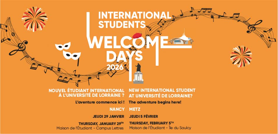 A l’occasion de la rentrée de janvier, le Welcome Desk de l’Université de Lorraine vous souhaite la bienvenue et a le plaisir de vous inviter à ses Welcome Days !